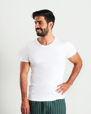 - 6 فنيلات رجالية نص كم من القطن الطبيعي 100%.